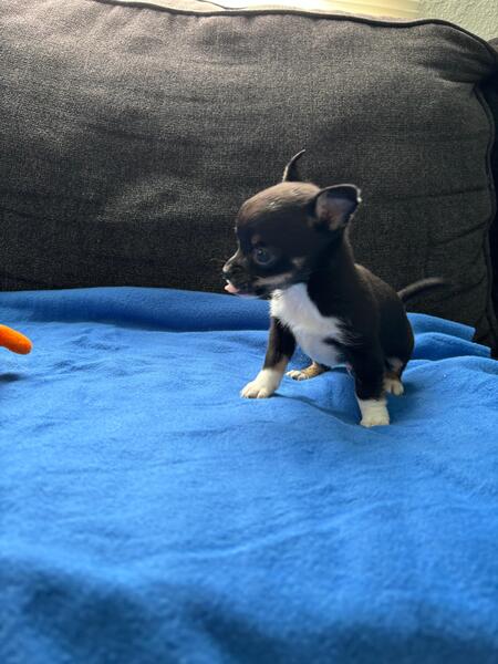 message leo28 about this ad Adorable small 8 week oldmale tea cup Chihuahua puppy looking for a caring and responsible home. He is very sweet, playful, and used to being around people. Healthy, clean, and ready to join a new family that can give him lots of love and attention. A reasonable rehoming fee applies to help cover his care, vet visits, and supplies. Please message 951-427-9853 |