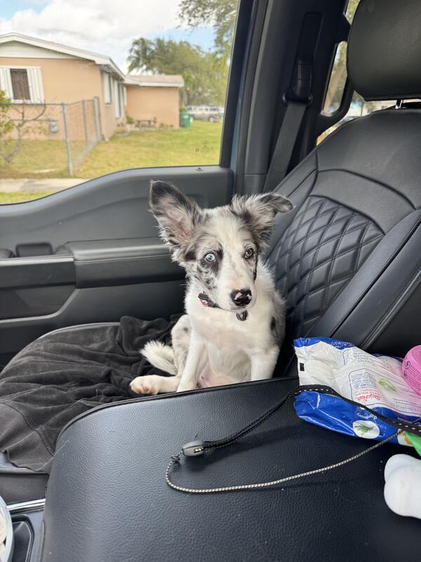 message malinde about this ad Rehoming AKC Border Collie Puppy Female Merle 15 weeks. Beautiful female AKC registered Border Collie puppy available. Merle with rare eye color, such a sweet puppy. Great cats, other dogs and kids. She has all shots, deworming, Bravecto flea treatment, is well socialized, crate trained, and potty trained outside. Our older dog is not accepting her. Location Miami Only serious inquiries Please |