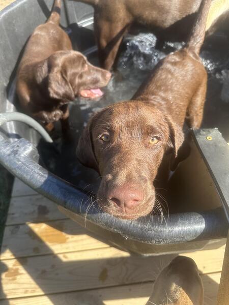 message thrntn0305 about this ad I have one chocolate boy, one chocolate girl, Akc litter certificate had all their shots and deworm Reddy for their new home and they are five months old born January 21, 2024 |