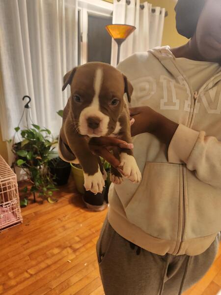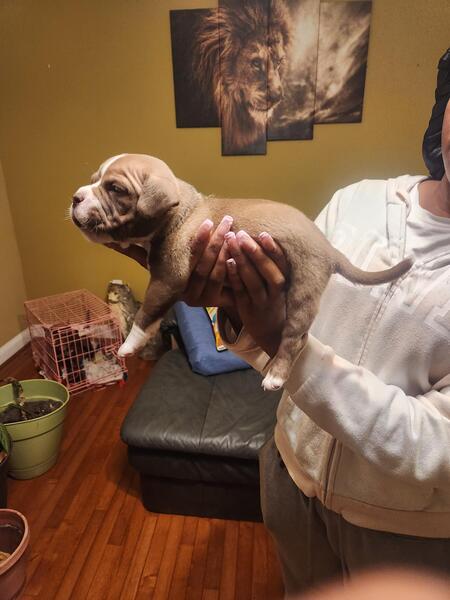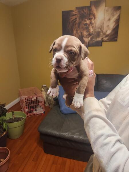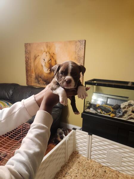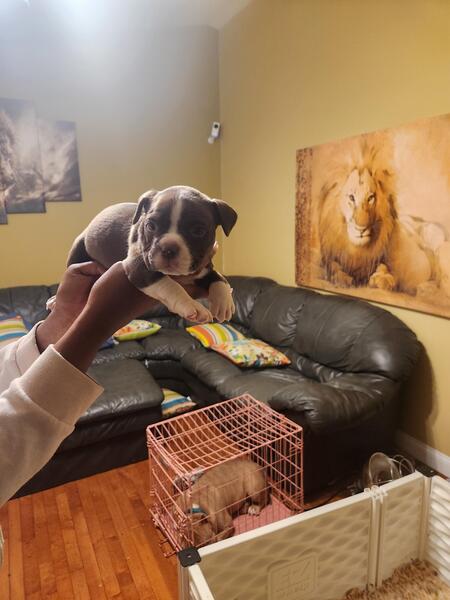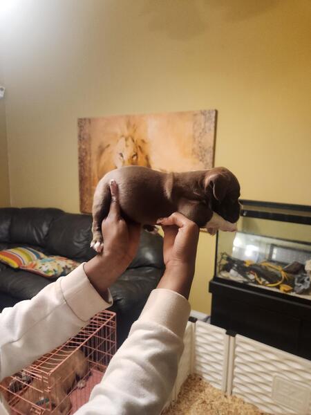 message wildlifeleo38 about this ad micro Bullies pups for sale 1 chocolate and white male 1 chocolate and white female born 8/19/23 will come with first set of shot dewormed possible ears done will be ready for there new homes 10/15/23 last 2 pups out of 7 price dropped |