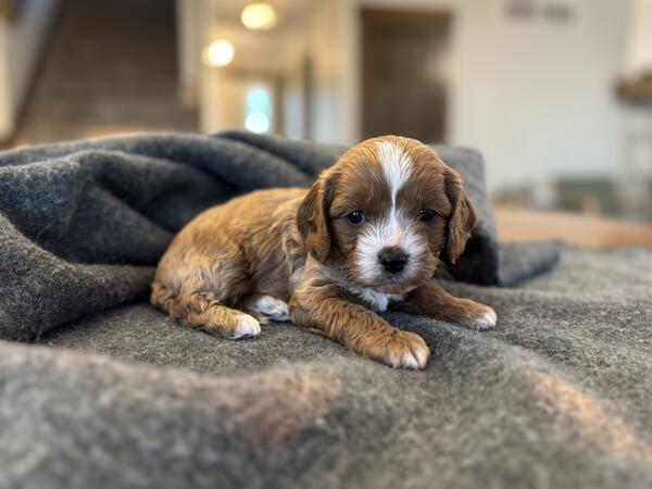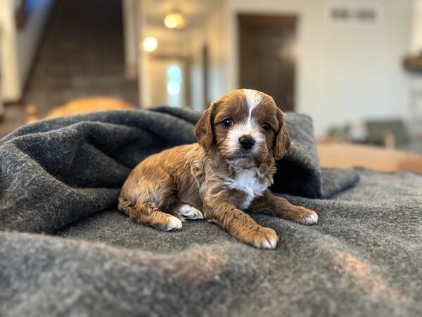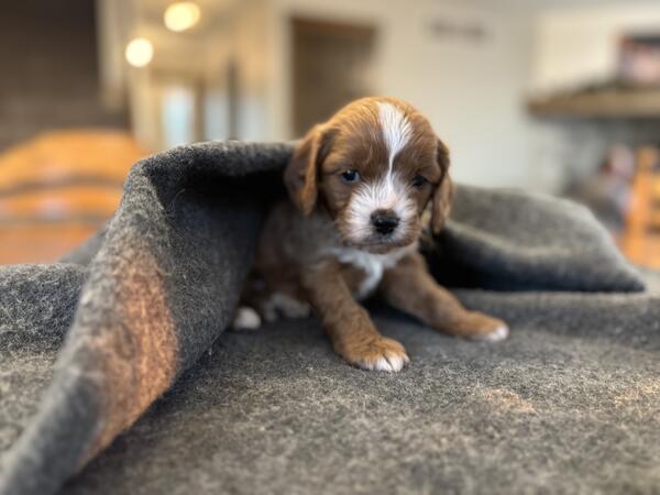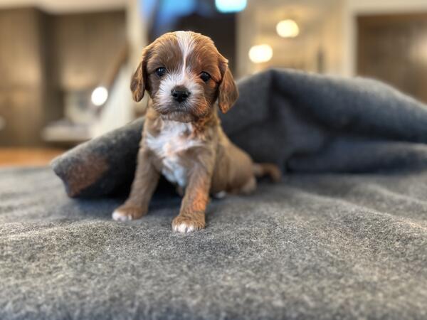 message shawnleman about this ad Bruce is a cute little Cavapoo. His mom is a 13lb AKC King Charles Cavalier and his dad is a 20lb AKC Miniature Poodle. He loves to be held. He will come up to date on dewormer, shots, a blanket from mom, and a bag of puppy chow. Located in Craigville, IN. Rehoming fee of $1000. Can reserve with $200 down payment. He will be ready at 8wks old on Dec 13th. Call or text Kara at 260-273-9246. |