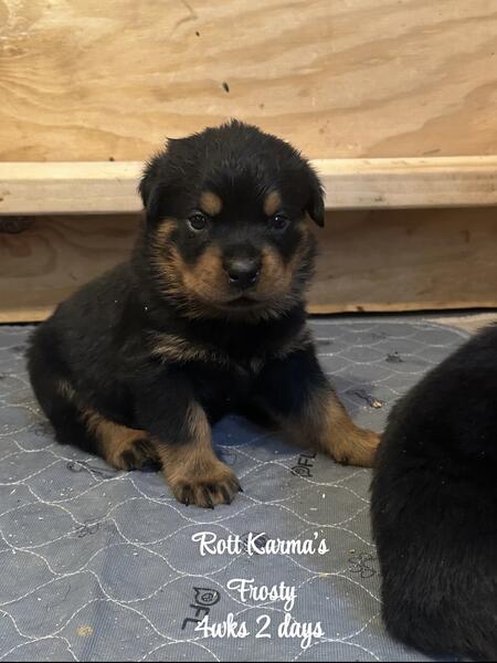 message rttkrm1040 about this ad Rottweiler puppies with AKC papers. I have 1 female and 2 males left. Will have first shots, deworming and vet check. Puppies are raised in home with Dam, other pets and children. Dam has VHMP AKC title and OFA JLPP clear/normal. Must be able to pick up in Colchester, CT |