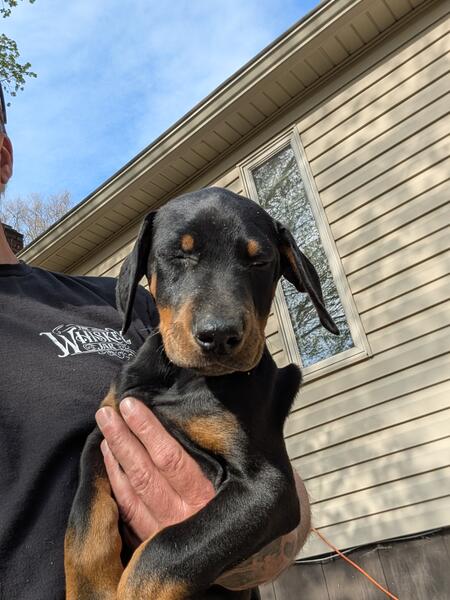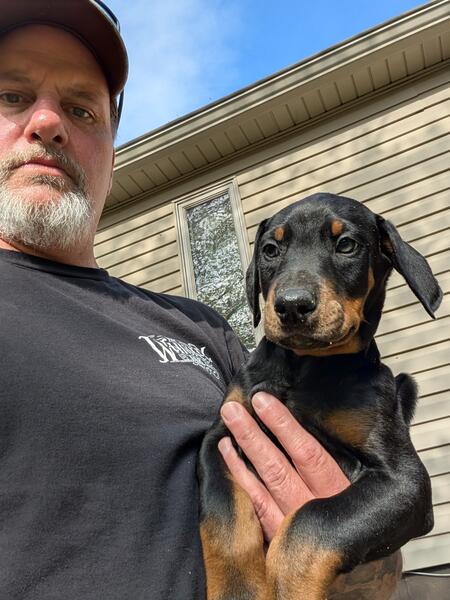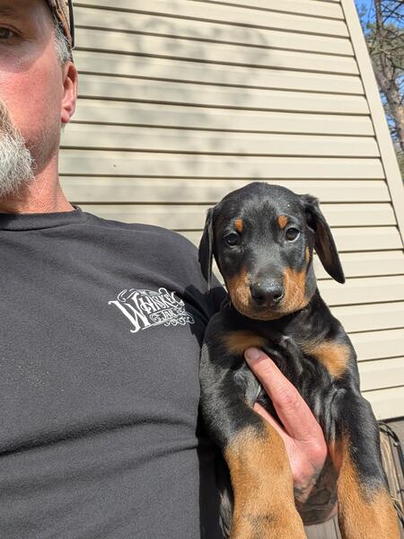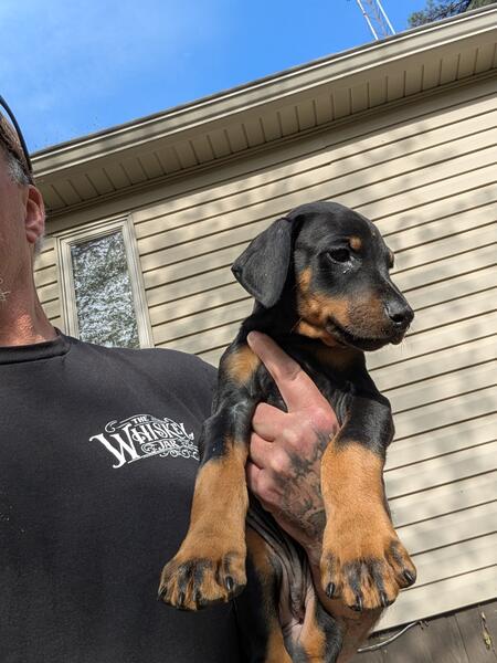 message rebelracing06 about this ad Akc Doberman pups, 10 weeks old, ready to go, very gentle parents, located in Sandusky, Michigan800 each ,call or text 931-309-0150. Thank you. |