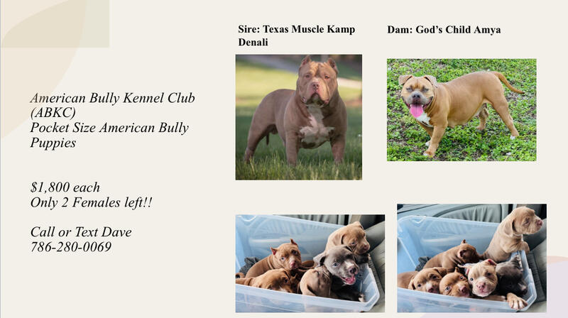 message cadillio about this ad Miami & Key West ABKC certified, vaccinated & dewormed. Ready for their forever homes 13Dec. Tap in! Only 2 females left! 786.280.0069 |