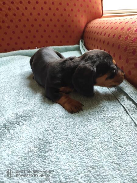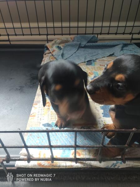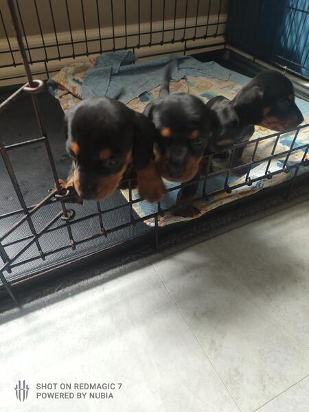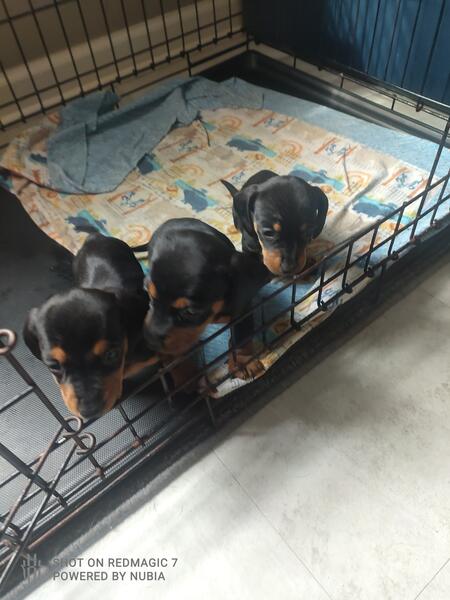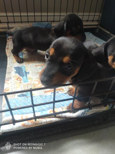message ukraninsky about this ad Say hello to our three adorable miniature dachshund puppies two sweet boys and one precious little girl! They were born on October 3rd, and each one has a shiny black and tan short coat with the cutest white spot on their chest. These little ones are full of love, cuddles, and puppy kisses! Theyll be ready to go to their forever homes on December 3rd just in time to bring some extra holiday joy Each puppy will come with their first set of shots and deworming for a healthy start in life. If youre looking for a loving, loyal little companion (or the perfect addition to your family wed love to hear from you! If you have any questions please ask |
