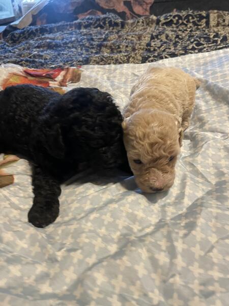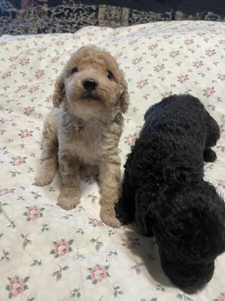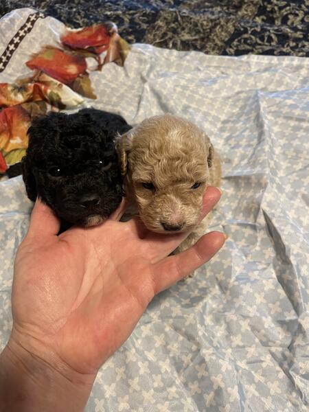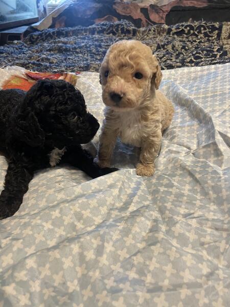 message priness338 about this ad CKC Toy Poodles that were born in April 8, 2025 there are three girls with your picture separately and two boys that are pictured separately. They are a very light cream with some white markings and then there are some black they will have their first shot they will be wormed dews removed, and ready for their forever home around the end of May. I am taking deposits serious inquiries only do not waste my time. 500 for the boys the girls. They will probably weigh around 8/9 pounds you can text me ask for Brad 336 715 6941 |