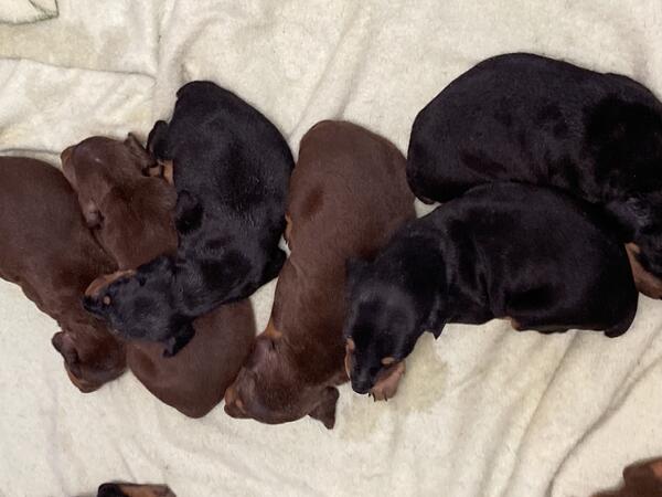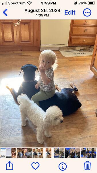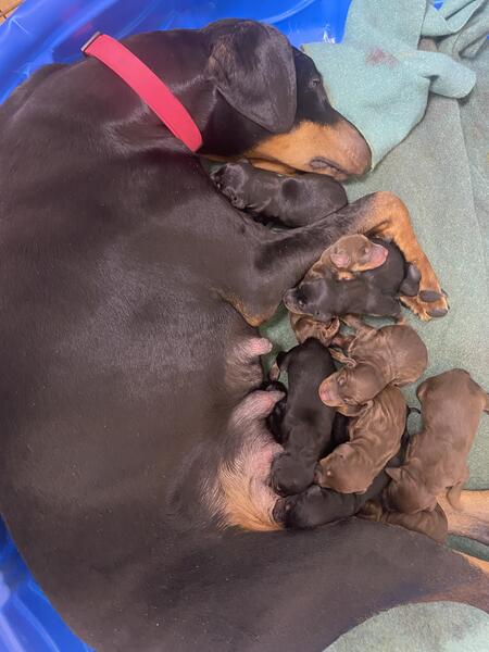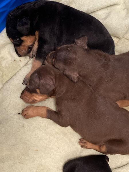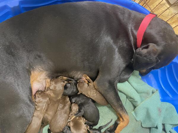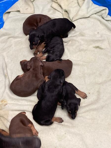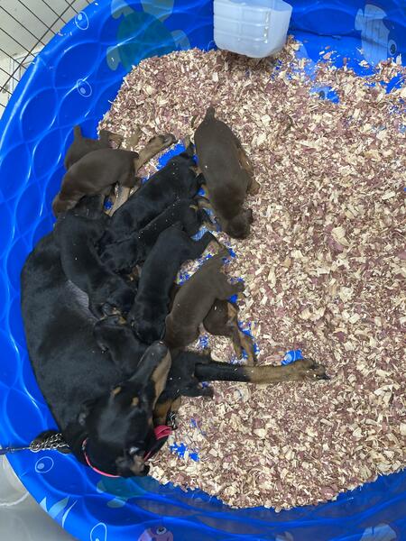 message rickysdobermans69 about this ad AKC registered Dobermans We have one black/ tan females that is 9 week old puppy looking for a forever home born may 3, 2025 Hope your Looking for a great loyal intelligent friend and very social with our other pets of the family and even the least aged two year old child as you can see with our Adult dogs Very loving trulyAims to please Call or text us lets talk Doberman Pinscher This was a Litter of ten eating pro plan puppy lamb and rice flavored)These AKC Registered European Doberman Pinscher puppies born in our home they have Tails docked and dew claws are removed - both parents are on site Have had regular scheduled wormings and they have had the first shot and second shot These are beautiful healthy pups We have raised Dobermans for over 30 years Great Breed of dog Loyal friend and raised with children More pictures will be loaded or please call or texted with your interest call 828-776-9475 can FaceTime video with you and have much better pictures Look forward to talking with you message rickysdobermans69 about this ad |