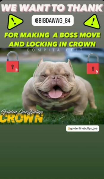 My clout daughter was bred to CROWN Tuesday, July 8th , has been confirmed pregnant , pups due September 6