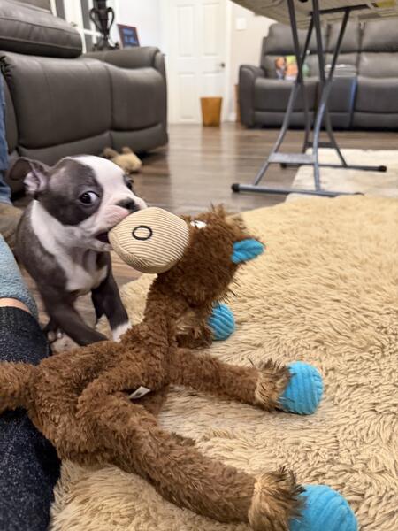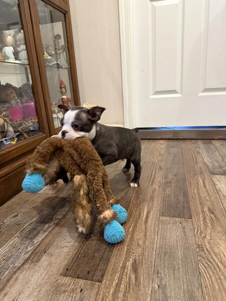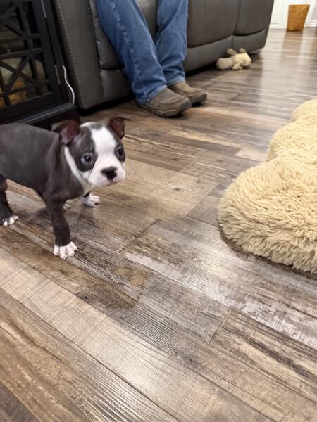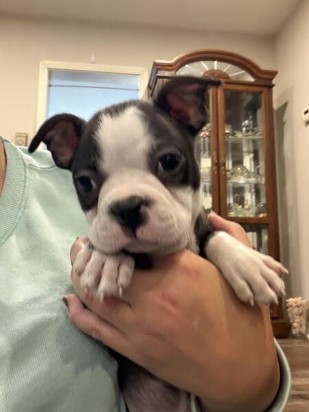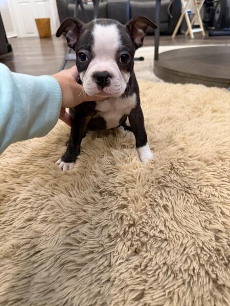 message pogle about this ad Handsome little AKC Boston Terrier puppy named Sting. He has a unique marking of a dot in the middle of his head. He is very cuddly and friendly right now. He was born 9/5/25. He will be ready to go to his new home by 10/31. He will come with registration papers, up to date vaccination record, vet check and limited guarantee. To reserve a puppy, we require us a $200 non-refundable deposit to hold. Delivery can be via pick-up or shipped. We usually can ship for around $300, we just need your zip code |