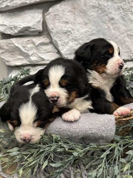 message libertypuppies20 about this ad We have five beautiful pups looking for a forever home! We have two males(black & green) and three females(red, blue, & purple) available! Both parents have had OFA and genetic testing done, with good results! Both parents are on Bernergarde as well! These puppies have highly concentrated import bloodlines, and will come with limited AKC registration papers! They will be up to date on vaccines and dewormer, as well as a vet exam at six weeks old! All dew claws are removed! Pups were born on 2-4-25, and will be ready to go to their new homes around April 1st! Kobe(father) weighs 100 lbs and is a big teddy bear! Hes very well behaved with a laid back and mellow temperament! Lady(Mother) weighs 75 lbs and is super sweet and gentle! She has such a kind soul and is a true Lady! Mother is on site, and visits are welcome! We are asking a $300 nonrefundable deposit to reserve a pup! I reserve pick of the litter in the order that puppies are reserved! The remaining amount will be due at time of pick up! Preferred methods of payment are Venmo or cash! Please reach out for more pictures or information! Calls or text are preferred! Whitney Schwalbach (260)273-3725 libertypuppies20@gmail.com message libertypuppies20 about this ad |