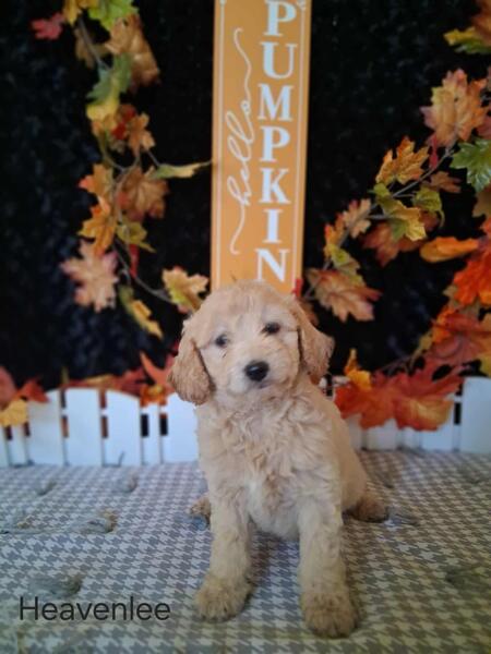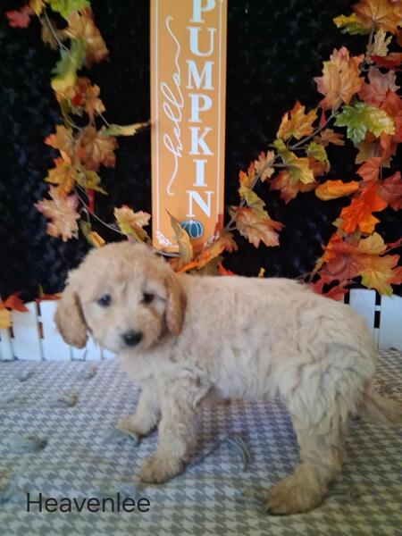 message wbtchr3147 about this ad Heavenlee is a F1b mini goldendoodle from our dam Hailey and a white poodle sire. All pups are fully vaccinated dewormed registered with AKC Canine Partners Program full health records and our health guarantee. We expect the doodles to be between 14-18 pounds full grown. Included in your purchase: Puppy leash collar contract food full health records including all vaccinations and full vet physical AKC Canine Companion registration peace of mind you are getting a wonderful addition to your family. |