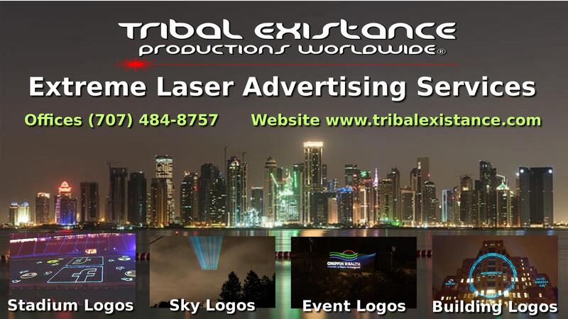 message lasershows about this ad Large scale futuristic high power laser advertisement display billboards. Tribal Existance productions Worldwide is leading technology with advanced lasers into the future by now offering full color laser ads projected onto mountains, clouds high in the sky, skyscrapers or large buildings, monuments and highly populated areas that have heavy traffic. Laser ads create full moving graphic animations in complex detail capable of displaying full commercial continuously running with advertisers products or your brand marketing message for a large audience. Contact Tribal Existance Productions Worldwide today for a free estimate. Rental, sales and services around the globe. TEP Worldwide also specializes for over 20 years of spectacular concert tours, festivals, holiday events, corporate events and film shoots in extremely powerful laser light show rental production services. Contact our offices 1 707-484-8757 or website message lasershows about this ad |