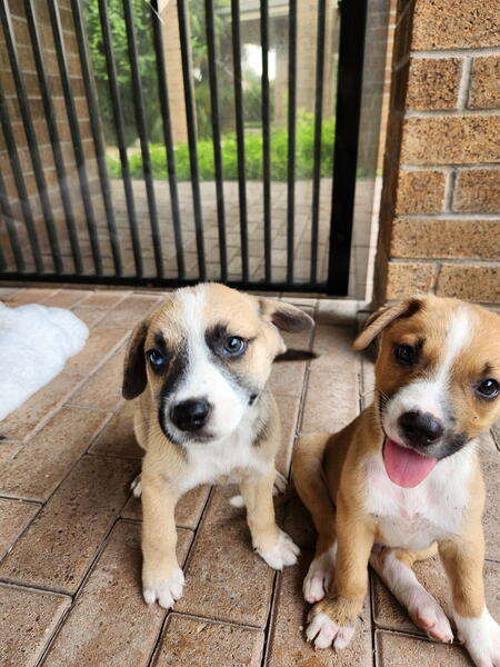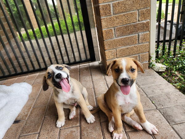 message brynnbaker2025 about this ad I rescued three puppies from a horrible situation. Since, they have been dewormed/flea/tick. They get their first puppy vaccinations this Saturday. We are adopting one, the other two need homes. They are the sweetest, cutest puppies ever. They are mixed breed. I also attached photos of the parents. The tan boy on the right is available and the all-white female is available. The all-white female puppy is deaf. (Common trait of white dogs It does not hinder her in anyway. |