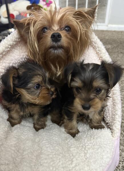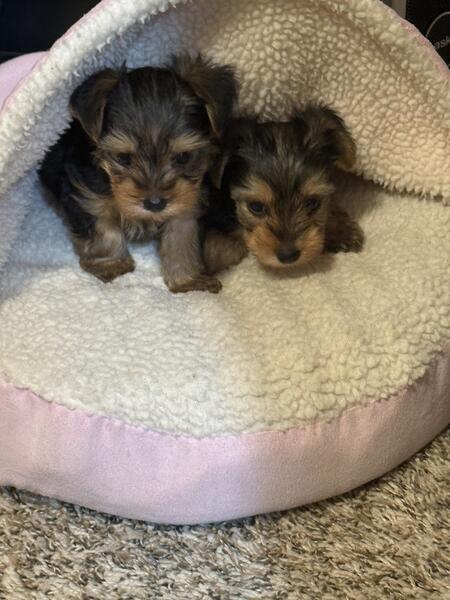 message xorasmom about this ad Two AKC Yorkshire Terrier puppies that were born on April 23, 2025. When fully grown, they should weigh between 4 to 6 pounds. For any additional information, please feel free to text or call me at (252) 433 - 5855. |