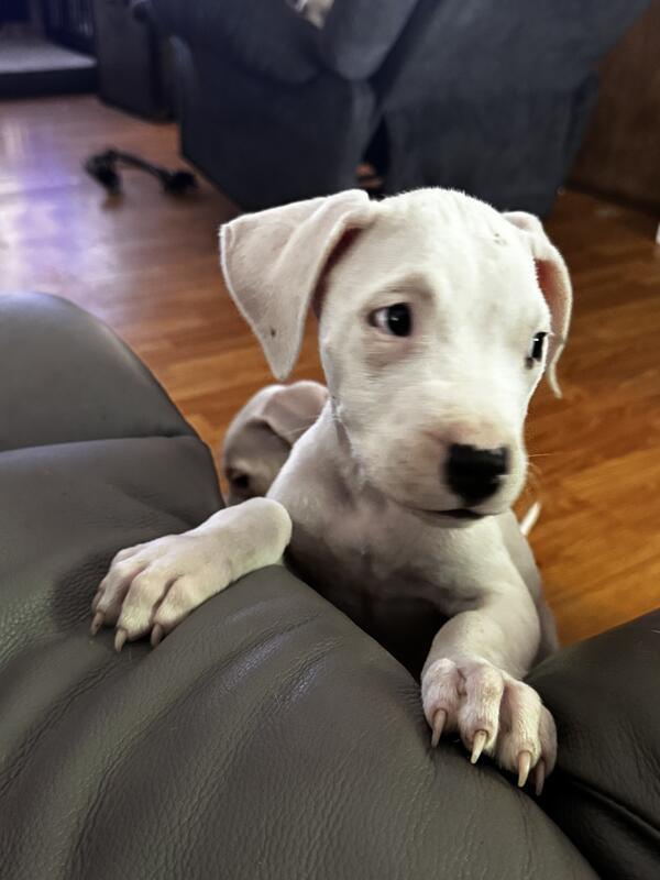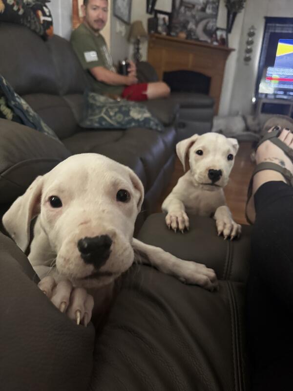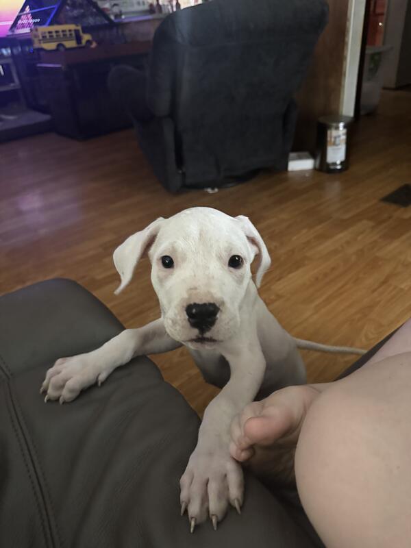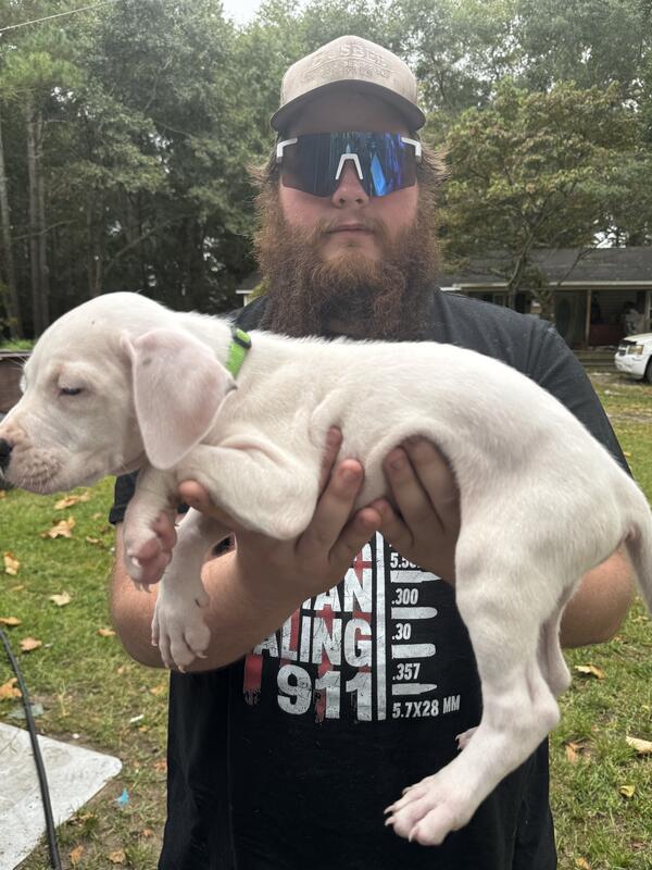 message tbrewer0621 about this ad I have 2 playful and lovable Dogo females. They are 11 weeks old and had first shots. Dogos are a loyal and protective breed. Would be perfect as a pet or a hunting buddy. They are highly intelligent and energetic dogs! If you dont know anything about the breed please do your research. I dont just sale my puppies to anyone. If you would like papers with them I can accommodate that. Price is $600 which is a steal for the breed. They are mistaken for pit bulls but they arent. Call or text 910-624-5764 name is Tonya |