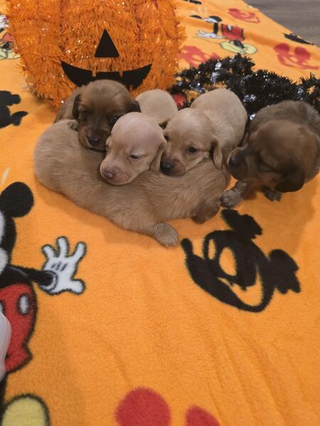 message playfulcompanions about this ad MINIATURE DACHSHUND PUPPIES 3 BOYS AND 2 GIRLS SHORT HAIRED AND LONG HAIRED CHOCOLATE RED AND SABLE COLORS. DEWORMED, FIRST SET OF SHOTS DONE, AND CKC REG PAPERS. READY FOR THEIR FOREVER HOMES ON OCTOBER 26, 2025. TEXT OR CALL 404-839-8931 |