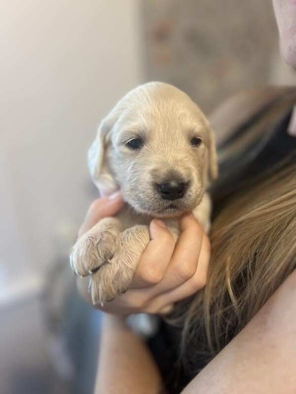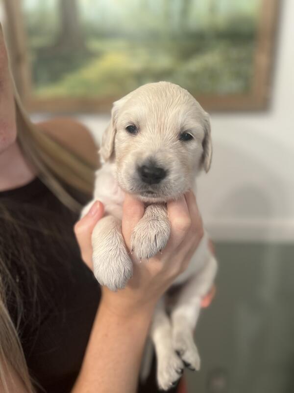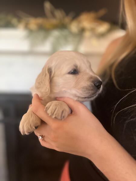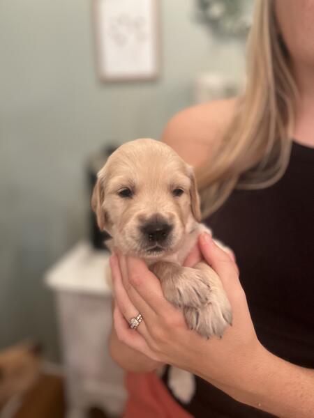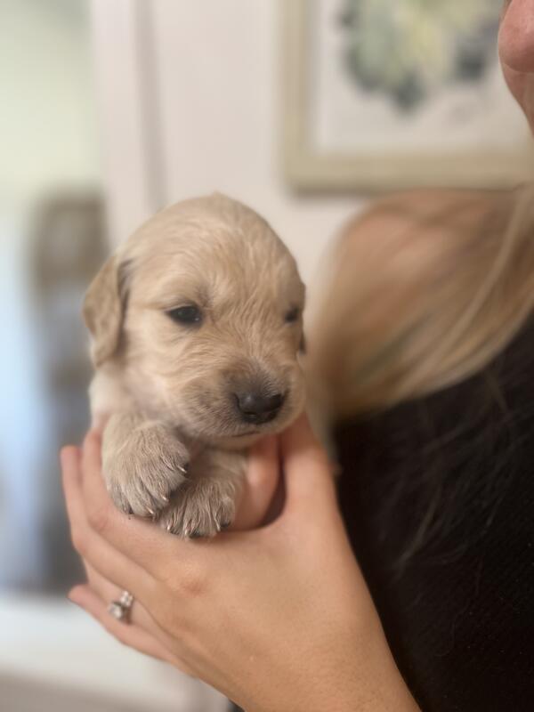 message rudiesretrievers about this ad AKC Golden Retriever Puppies available! We have 3 female and 2 male golden retrievers! Dame: English Cream, Sire: American Golden. Puppies come with first vaccinations and deworming. Puppies will be going to their forever homes on November 7th - 10th (at 8 weeks old We raise them in our home and they get LOTS of TLC before they go to their forever home! We are looking for the best homes for our sweet puppies! |