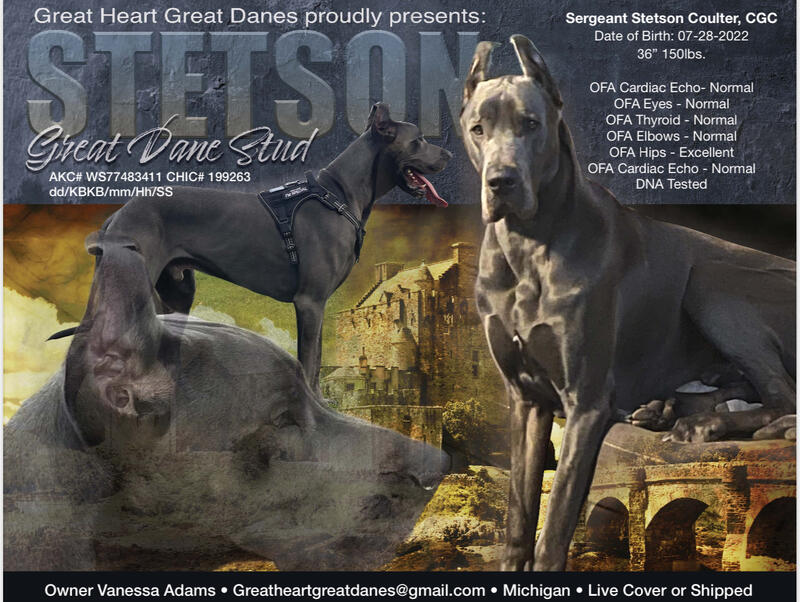 message vinnie777 about this ad Proud to introduce my stunning Stetson and announce that he is available for stud service He is Kind, intelligent and handsome. His temperament is magnificent and his structure is beautiful, streamlined and muscular. DOB 7/28/22 150lbs, 36" at the withers. He is: OFA Certified - Genetic Tested - AKC Registered - Canine Good Citizen- Proven- Live Cover / Fresh Shipped Very Long line of champions in both parental lines, European and American So loyal and full of personality, so darn sweet. He's a big goof who loves his walks and playing with his sister or just sit in your lap for loving and snuggles. My pride and joy! |