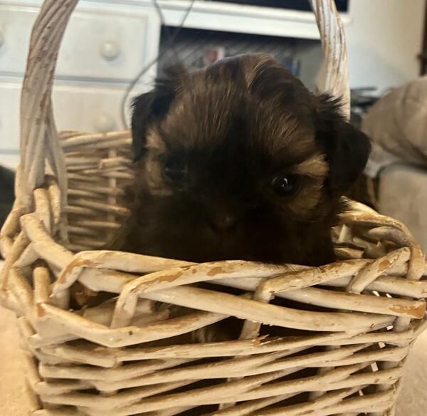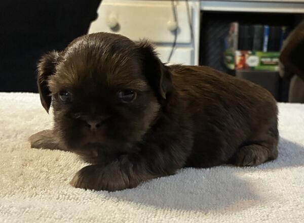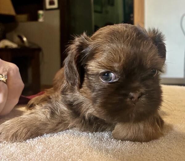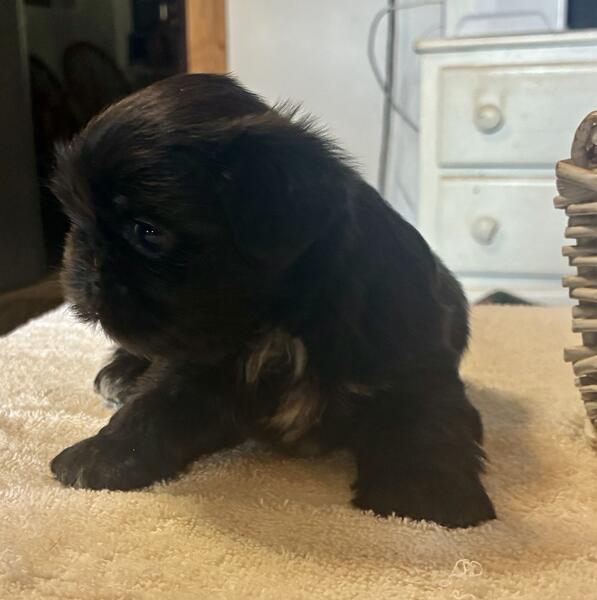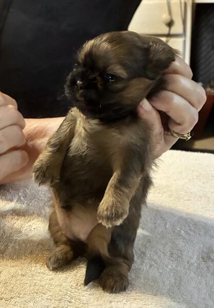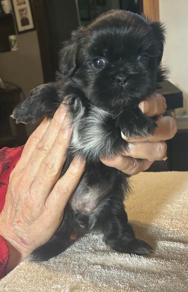 message bbdvb141 about this ad I have two litters of AKC Shih Tzu puppies. They will have all their shots and a certificate from the vet stating that they are in good health. Also wormed every two weeks and dew claws removed. I have two brown/brindle females and two brown/brindle males. Also 4 mostly black females. One litter will be available approximately August 28th and the other litter will be available early September. I look forward to your questions. Thanks |