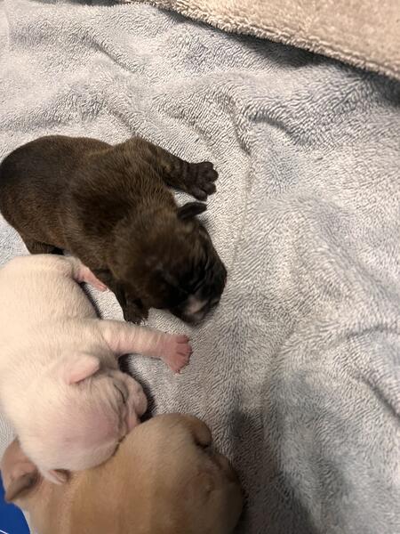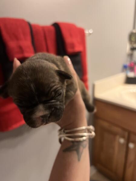message amberzahn about this ad Hey there, I just recently had a small litter of French bulldog babies. I have one female left here mom is a mini French bulldog at 18 pound and her dad is a standard size. She will not be available till the first week of October but will come with first shots! You can text me at 8o4/ nine21/ two 0 5 three. |