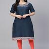 message rohinee about this ad Product Code: 9626009 Blue yoke design straight kurta, has a round neck, three-quarter sleeves, curved hem, side slits The model (height 5'8 is wearing a size S You'll love the style, comfort and durability of this W kurta. This blue piece is a stylish option for a nice family function or event when teamed with churidar leggings and classic flats. Polyester Hand-wash httpsmyntr.it/gNrXIgJ |