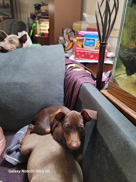 message kniselyminpins about this ad Hello, Please read this over. It should also answer some of the questions you may have. It includes a lot of what we also provide to get your puppy home. From here safe and sound. To your home. We have 1 Fawn Rust tail docked 5 months old $1500.00. 1 Chocolate Rust tail docked 5 months old $1850.00 3 Fawn Rust/Tan (2 female 1 male) Natural Tail not docked. DOB 30 December 2024 $1650.00 We dont due ears. Ask any questions you may have. We do send a new puppy. Home kit package. It has a backpack or travel carrier, 2 pop up water bowls, blanket, poop bags + holder, collar, leash, cow hoof, squeaky toy, enough of our food mix to transition to your planned food, up to date on shots, already on a heart worm medication, and micro chipped. Basically everything. You need to get our fur babies. From here to your door step. We do not potty pad or news paper train. This doesnt mean it will be potty trained. But we have them mostly not peeing at night in there crate. A good start on training. Most of the puppies have started going to the slider and whining to go out. When they are ready to go out. if you use Facebook. We have a few videos from the week posted. You can search Kniselys MinPins-KMP if the link doesnt work for you. The food they are on. 35% Diamond Puppy. Chicken. 30% American Journey for Puppies. Salmon, Brown Rice & Vegetable Recipe. 35% Taste of the Wild Bison and Venison. 40% max chicken. We have had a few fur babies. That would have an. Allergic reaction to high levels of chicken. Making it look like they are staring into space. Just constantly liking their lips. At 40 Now we no longer see it now. If you plan to fly for pick up. We do charge for airport drop off service. I do charge extra to deliver at a airport. Columbus OH365 Dayton OH275 Ft Wayne IN265 Indianapolis IN385 The travel carrier and backpacks are both airlines approved. Travel carrier is also pre-installed for seatbelt attachment. Backpack different shape. Could also still work. For in the car. It just wont be as tight. Running the seatbelt through the straps. MinPins are a bundle of energy, Snuggles, and an excellent blanket thief. We do have a fenced back yard. We have had to limit this years babies. To the patio area. We got a golden retriever in the spring. She has too much puppy and likes to pick the little one up by collar and run. We are keeping them separate this summer/fall. For their safety. They get to play outside all day. As long as its 40F and warmer. With no rain. They do stay out with sprinkles and 65F plus. So, they get used to none freezing cold and being outside in the wet some. Please check with your vet for a new puppy wellness. You will need a date. Will need to be. With in 4 business days of pick-up date. To complete our Deposit Contract. All sales/payments and contracts Will be done with Good Dog. You can find it with our Facebook page. Kniselys Minpins-KMP message kniselyminpins about this ad |