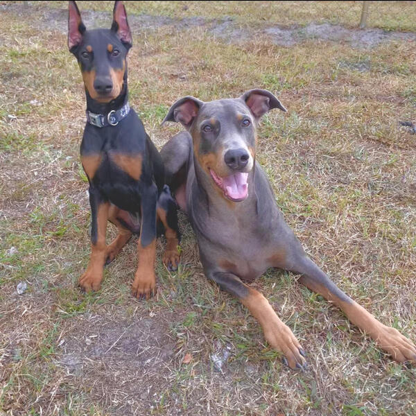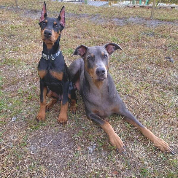 message btweeks about this ad Blue is a 5 year old, 85lbs healthy and happy Blue Doberman Pincher. He is CKC registered with a certified pedigree. Blue has a great disposition, is trained in German, and loves people and fur friends. Blue is a dog model online, featured in coloring books, calendars, and on websites. He is intelligent, funny, protective, and caring. He loves the outdoors, especially water. Our dogs are our kids so he is very spoiled. Blue had his first successfully studded litter in July 2023. The pictures with the black pup show him and his son, Cash. Blue has been health tested and I do have breeding experience. We will only breed with genetically tested females after reviewing the results to ensure responsible breeding practices. Available for stud in exchange for pick of the litter or a stud fee. Stud fee is equal to retail price of one puppy. Please reach out with any questions! |