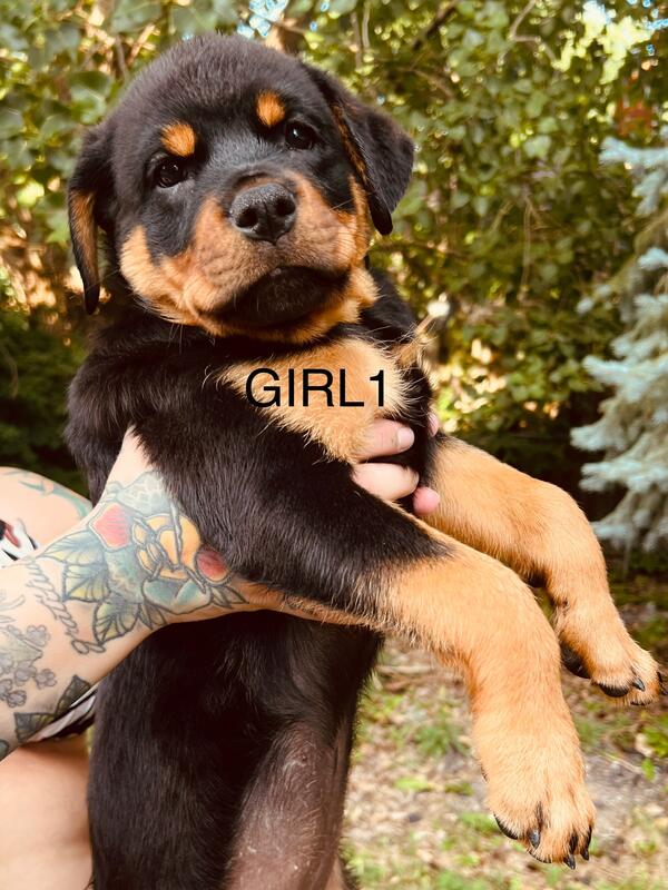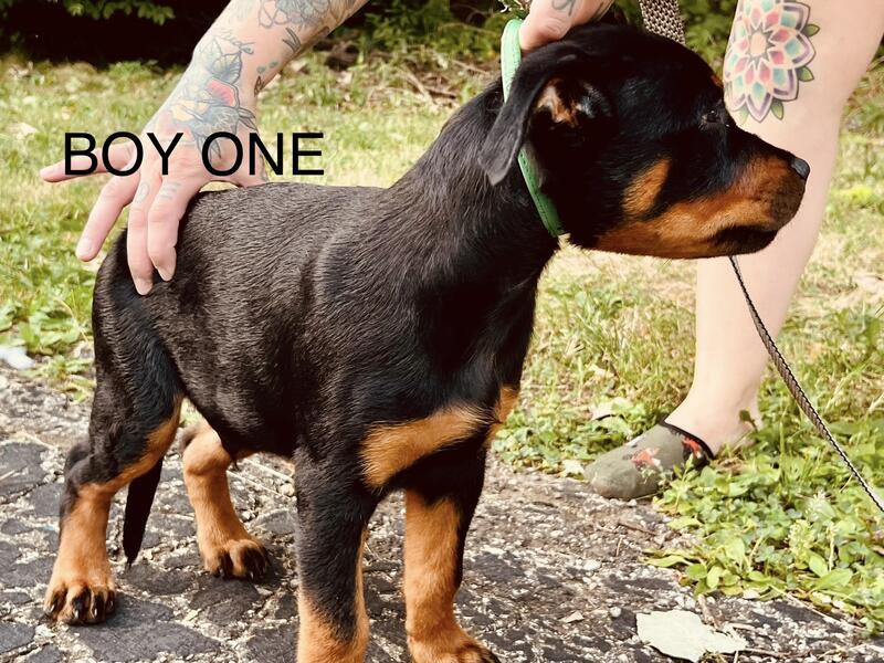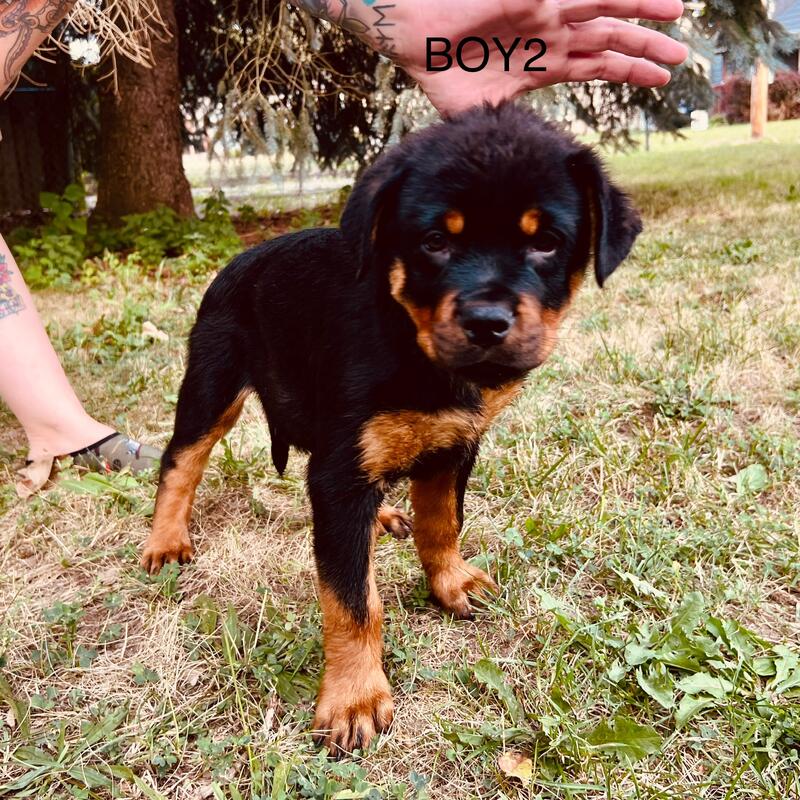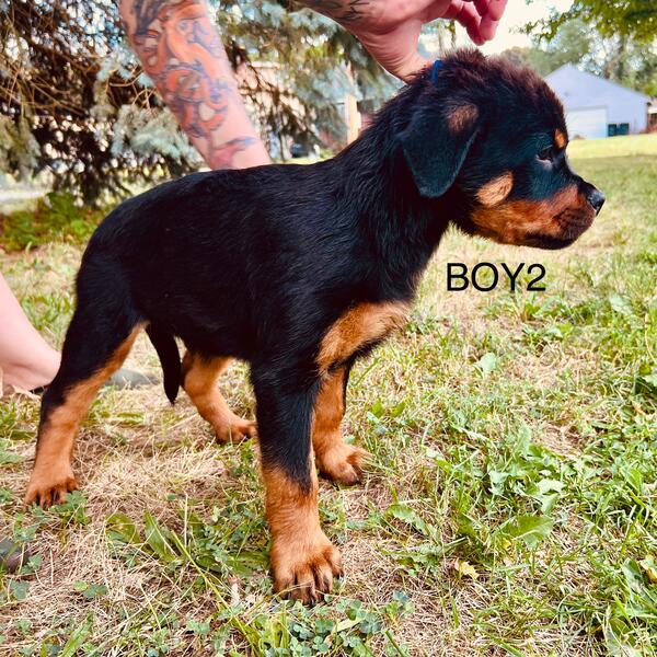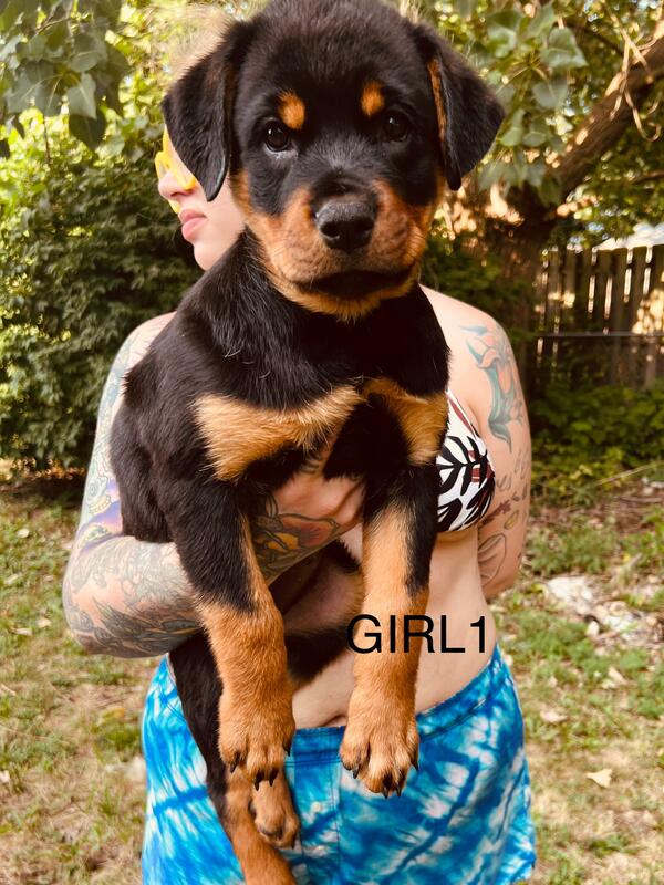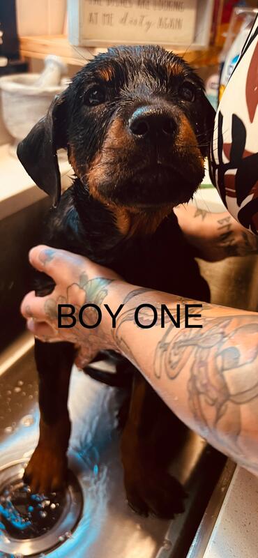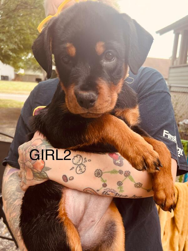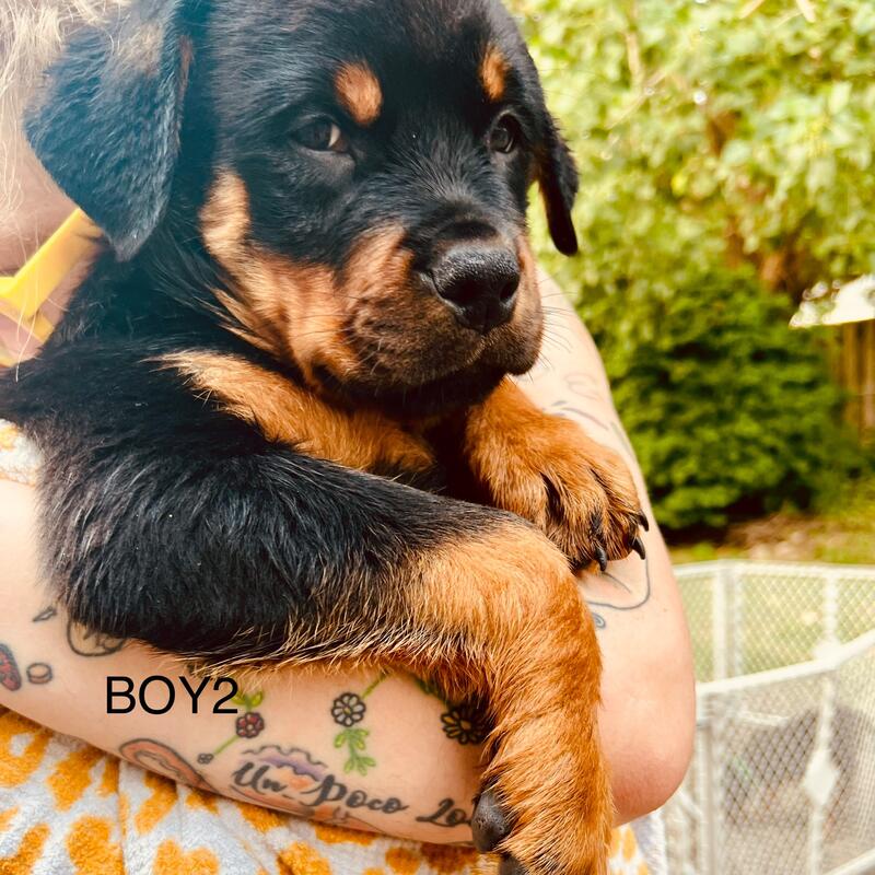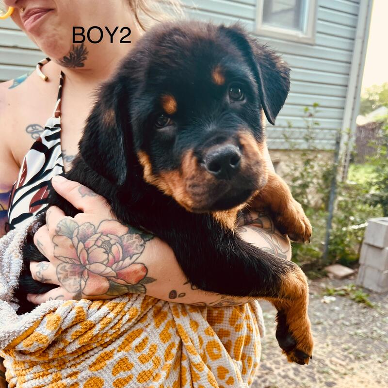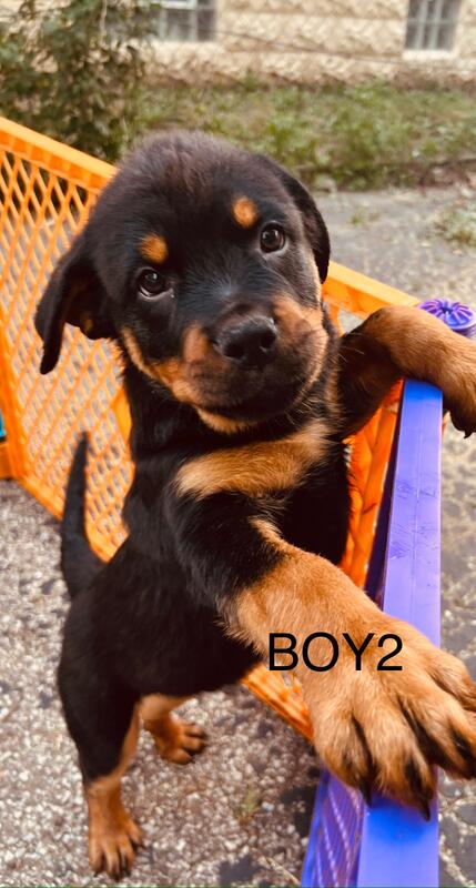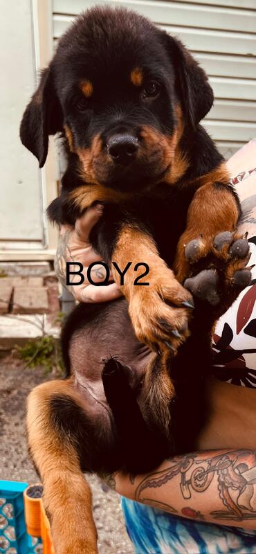 message dogsarebetter2 about this ad 2 boys and 2 girls left all vaccinated comes with vet records purebred, dad is AKC working dog and mom also comes from working lines extremely confident and playful raised around two bigger Rottweilers and and a large Cane Corso highly socialized around men and women, boys and girls raised in urban environment with the sounds of the city, very good family dogs, very affectionate and fearless, sold as pets only text 33zero98seven02fiveseven or call leave a message if you think your home would give these pups the love they need to thrive! |