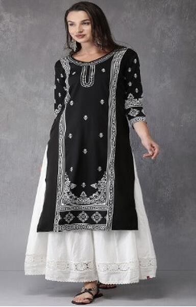 message rohinee about this ad Product Code: 2322907 Black and white printed straight kurta, has a round neck, three-quarter sleeves, straight hem, side slits The model (height 5'8 is wearing a size S You'll love the style, comfort and durability of this Anouk kurta. Look chic for the day with this kurta and leggings. 100% polyester Machine-wash httpsmyntr.it/M15Vog4 |