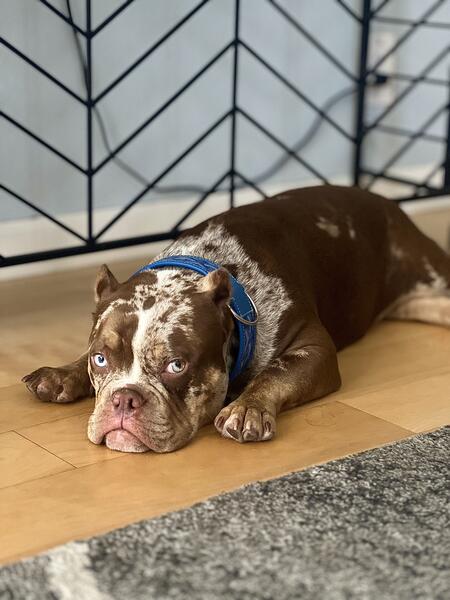 message katej about this ad Beautiful tricolor chocolate merle male with striking blue eyes and a wide, strong bone structure. He is extremely kind, calm, doesnt pull on the leash, and is amazing with kids, other dogs, and even cats. No aggression at all super gentle personality. He stays close off-leash, very attached to his person a true soul companion! Neutered. Text me : +1 (323) 533-7173 |