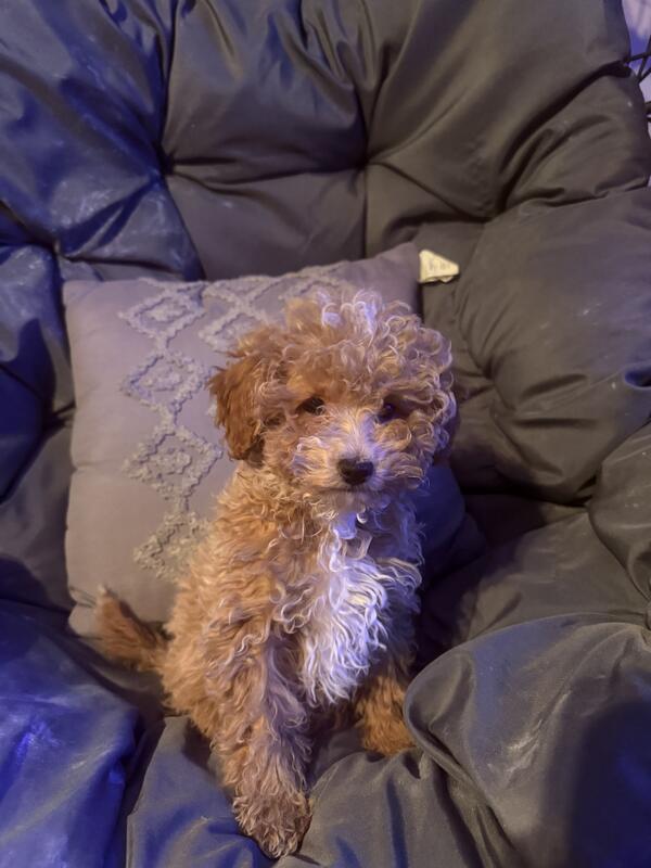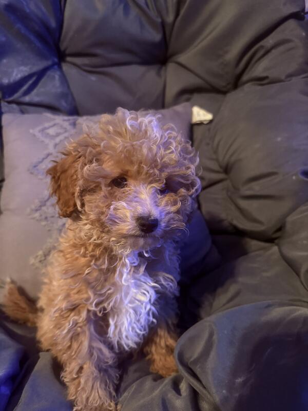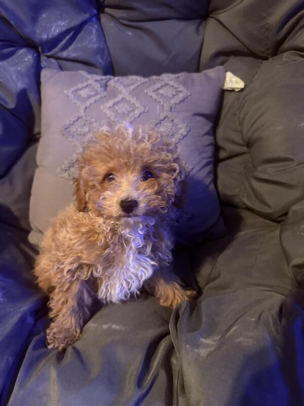 message melopez12 about this ad Male toy poodle puppy ready for a forever home. 3 months, has his first vaccine and is started on his potty training going potty outside. Very sweet baby. He does have a half blue eye and brown and the other fully brown. 9204926191 |