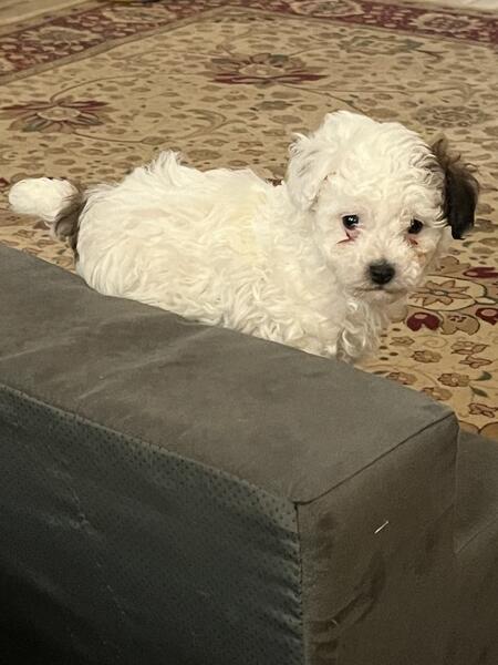 message ladyg about this ad $1,000 Male Toy Poodle pup born April 19, 2025. Parti (white with chocolate CKC registered, up to date on vaccines & dewormings Dad weighs 5 lbs, Mom weighs 7 lbs. TEXT ONLY 478 808 4893 Perry Ga, Georgia State Licensed & Inspected |