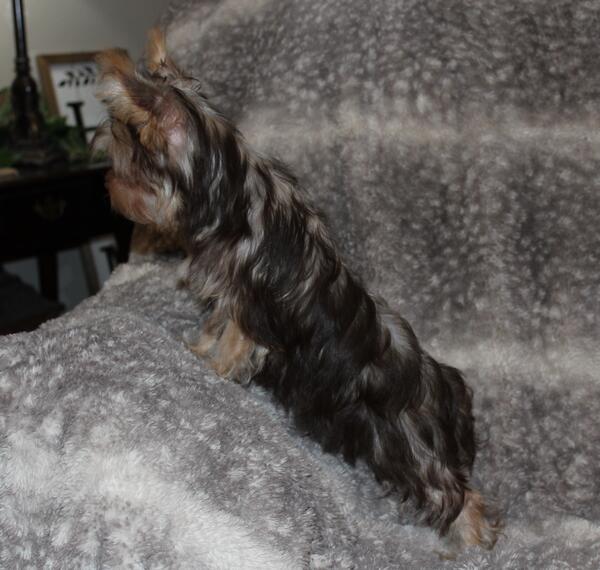 Yorkshire Terrier male puppy currently available to a wonderful loving home! He has completed ENS, has been raised indoors, and is being properly socialized. His parents have both been DNA Health Tested Negative/Clear, have wonderful temperaments, are very loving, intelligent, loyal, and laid-back. All puppies have had their dewclaws removed, tail docked, been vet examined, microchipped, vaccinated twice, are current on dewormings, and will be started on flea/tick preventative prior to leaving my care. He will go home with a 1yr Health Guarantee, AKC & CKC registration, copy of pedigree, health record, treats, toy, blanket, and puppy food! Meeting, ground shipping, and lap nanny services available if needed.