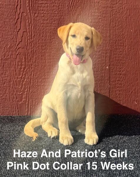 message robynhatz about this ad The Dam Haze is champagne female 1/2 English and 1/2 American. The Sire Patriot is a long hair champagne English male. Patriots panel testing shows clear for 24 genetic diseases carrier of STGD. There are 11 pups in the litter. We have 4 girls and 5 boys available for $800 each. The pups are ready to go home. All Lab puppies come with AKC limited registration, 25 month from whelp day guarantee, microchip, puppy food, a toy, a blanket with mom's scent, vaccines and de worming current, a months supply of NuVet Plus and NuJoint Plus DS vitamins along with lots of love and puppy kisses. Please call or txt with any questions 951-505-1188 You can view my website at www.hatz-off-labradors.com located in Twentynine Palms, Ca. |