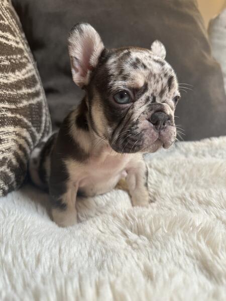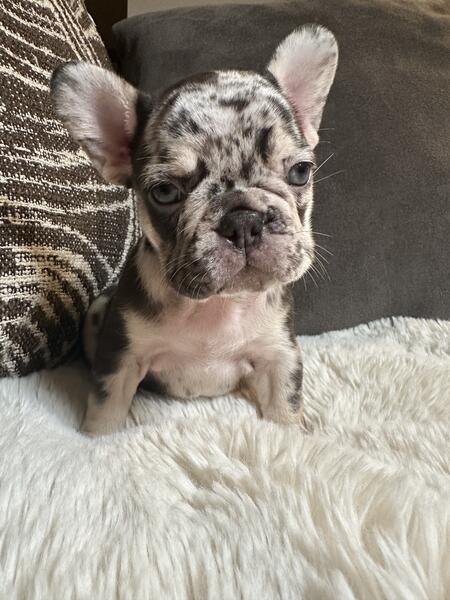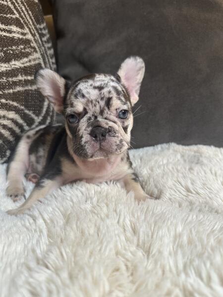 message sophiafrenchie7 about this ad Reserve now! Meet Harley! Shes a 4mth old Merle Frenchie Girl (fluffy carrier Shes super sweet & girly, loves gentle cuddles, and she has beautiful facial features and body build. Harley loves to play with her siblings all around the house. Looking for a loving family to bring more love and fun to your furever home! She will come with all immunization shots, health exam, dewormer, pad potty trained, and AKC registration and health records! Text or call 3466615069 or email Sophiafrenchie7@gmail.com for reservation information! Check out our TikTok @Sophias.Frenchies |