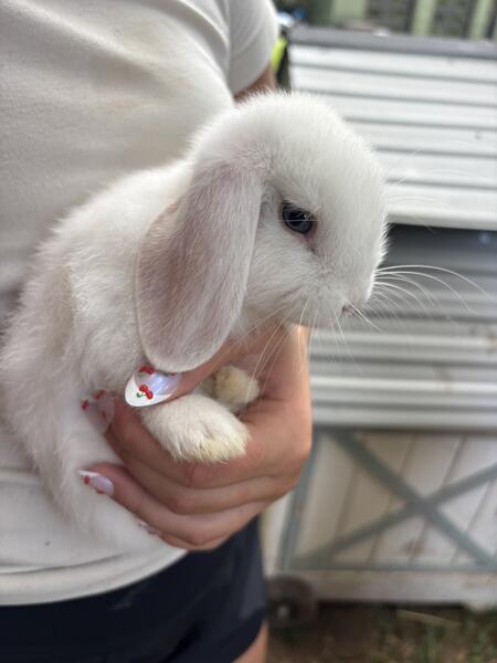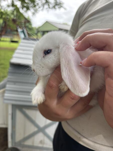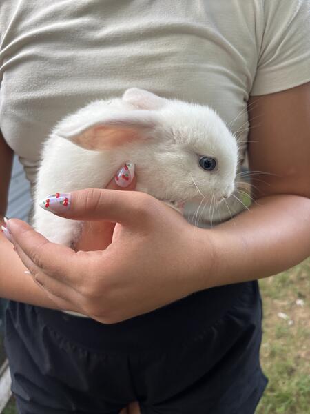 We have three all white with blue eyes baby bunnies ready for new homes. They are 8 weeks old