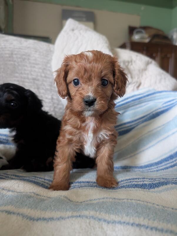 message cassello about this ad Two beautiful cavapoo girls. One red and white and one black tan and white. Born November 22 and ready January 11. These non shedding girls are full of love and are intelligent and playful. They will be dewormed and health checked before going to new homes and have age appropriate vaccinations. We are location smiths creek Michigan 48027. Check out our Facebook page cassello cavaliers and cavadoodles |