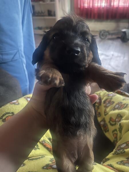message gemsdoxies50 about this ad I have 2 female long hair mini dachshund puppies ready for their forever home 4/11/25 mom is a long hair chocolate weight 9lbs and dad is a short hair red dapple weight 8lbs. These beautiful loving girls were born on Valentines Day. They are ready to love you and snuggle and add joy to your family. PM me for more information. Serious inquiries only |
