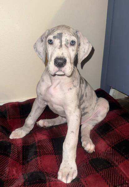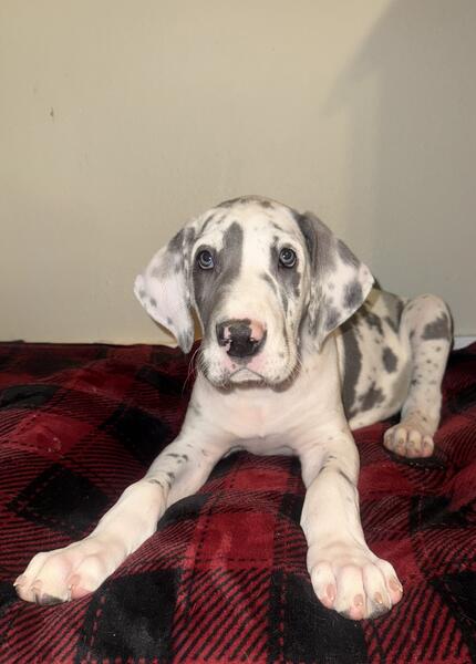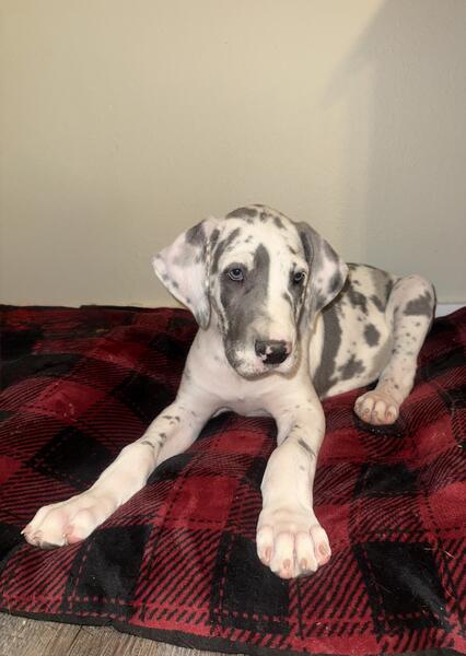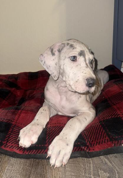 message kaylajo05 about this ad We have 2 AKC Great Dane puppies looking for loving homes. They were born September 13th. They will be ready on November 8th. Picture were taken on 11/11. Dewclaws have been removed, will have first shots, vet checked and dewormed regularly. They will go home with a puppy goody bag and a detailed folder of every step of their lives so far. 1 - Blue Merle Male 1 - Blue Harlequin Males Mom is a Blue Merle that is 32 inches tall,135 pounds. Dad is a Blue that is 36 inches tall and 185 pounds! Both parents are family raised dogs. Price is $1000. A Non-Refundable $300 deposit to hold your puppy. Remaining balance due at pickup. Purchase contract is required that includes Spay/Neuter contract and puppy return contract. 2 Year Health Guarantee and life time breeder support. Puppies are sold as pet only, full breeding rights can be discussed. Located in Cameron, WI. Please call or text Kayla at (715)450-6048 message kaylajo05 about this ad |
