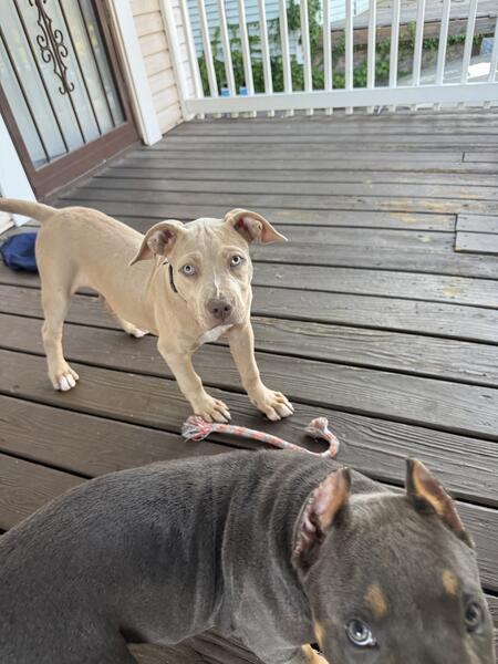 message fellowfriend0619 about this ad Amazing beautiful eyed bull, looking for and amazing home as well. Well taken care of up to date on shots, dewormer as well. This is going to be a great addition to some one home well structured pup. Doing great with create training, and also great around children and other animals she is 14 weeks and name nala contact me 216-972-2821 |