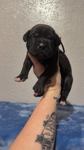 message sevenhillsar about this ad ICCF Registered Cane Corso -DOB 11/04/2025 -8 Weeks 12/30/2025 -Ready at 8 Weeks -Tails docked -Ears cropped -Dewormed 2,4,6,8 weeks -Current on age appropriate vaccines -Vet checked -Health Guarantee/Contract -Parents tested 100% Cane Corso -Parents DM, CMR1, DSRA, and NCL1 Clear -Raised with kids & other dogs. Exposed to chickens, ducks, and goats $1800 Limited $2500 Full |