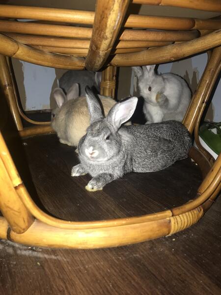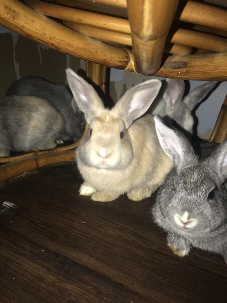 Bunnies for sale, mini Rex and Rex offspring, litter box trained, and amazing with kids.