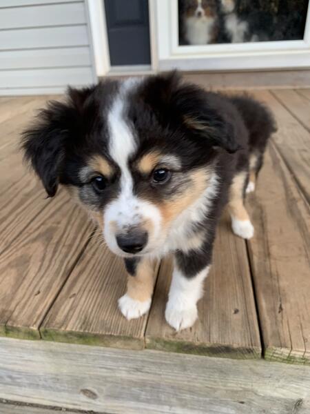 message kepicot about this ad Male black tri Australian Shepherd puppy. Ready for new home the weekend before Thanksgiving. has received first vaccines. Farm raised with chickens, goats, cats, dogs, and kids. Both parents in home. |