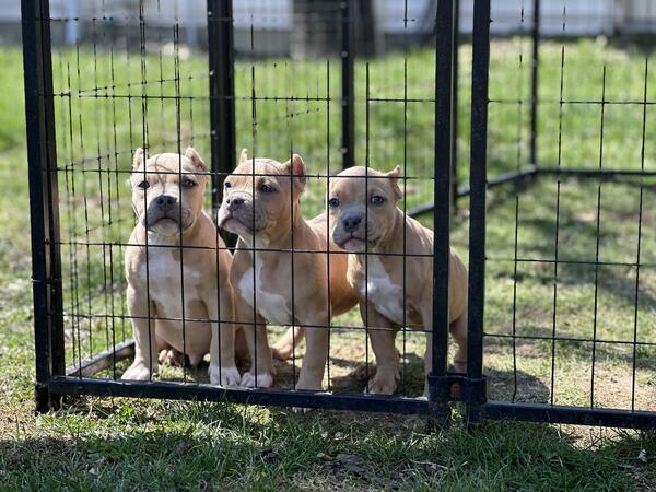 message brkmg937 about this ad American Bully Pups Avaliable. ABKC Registered. Chocolate and tri carriers. UTD on all vaccines and dewormer. 11 weeks old. 3 males 2 females. You can text me at +13179461702 |