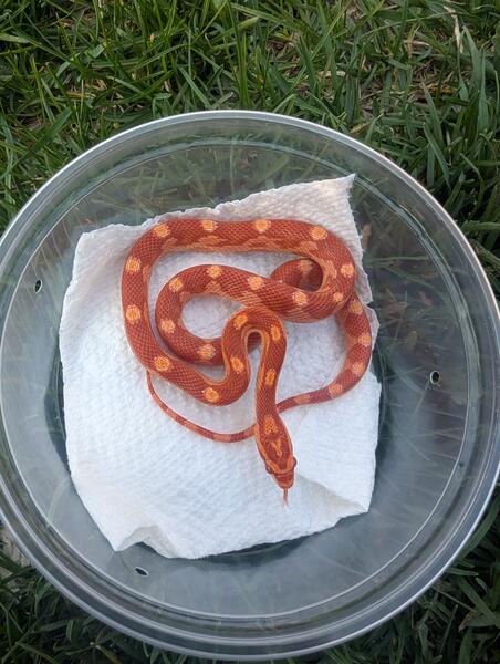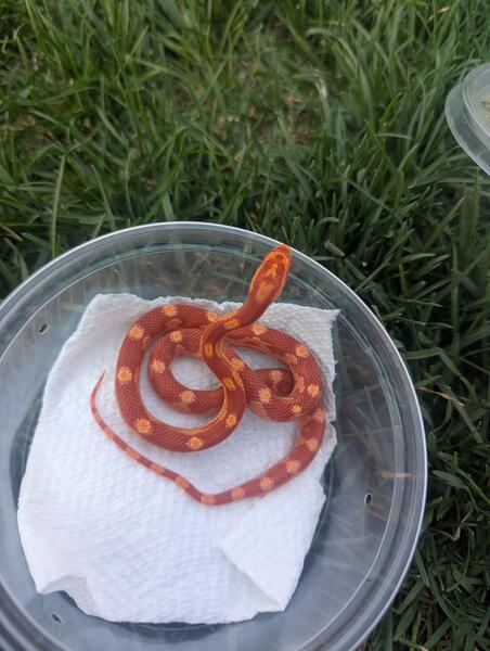 Albino motley het lavender corn snake. Eats f/t pinkie mice