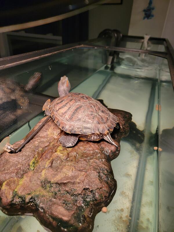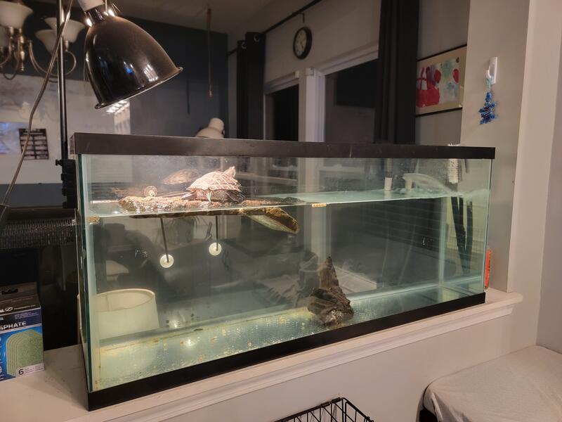 Red Ear Slider turtle (2 years old 55 gallon tank and a 306 fluval filter.