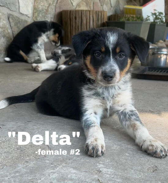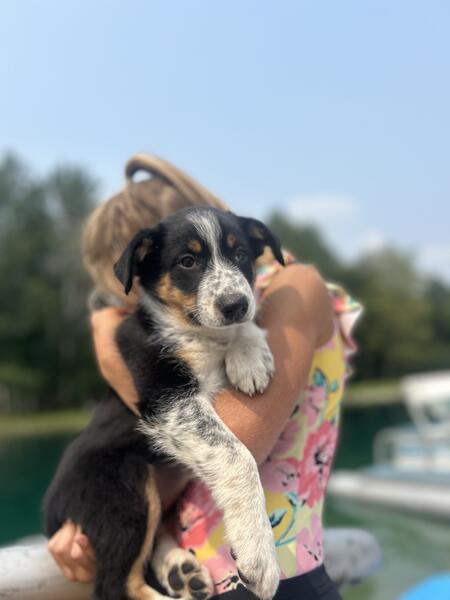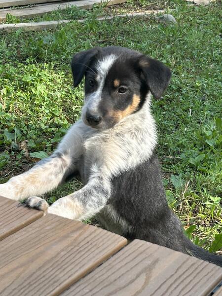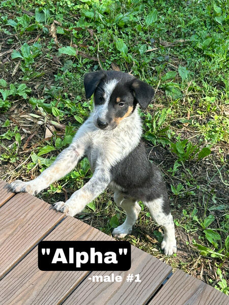 message amyeastway about this ad Mom is a working red heeler/border collie from out west. Dad is a paper tricolored border collie from Michigan. Puppies are vaxed and dewormed, outdoor pups, can be trained for indoor. Learned basic commands. Very smart and great with kids. Born June 7. 10 weeks old. |