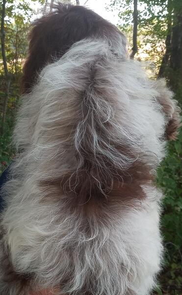 message u2jereo2 about this ad Porti - Cock-a-Doodle-Do Extra Small Chocolate/White Male with Chocolate ticking. Blend of Portuguese Water Dog x Poodle x Cocker Spaniel. 11 lb. Dad. Does not shed hair. Awesome Pup. Elizabeth, IN |