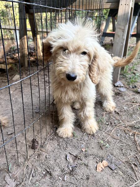 message rosalessc07 about this ad I have this female puppy available and READY to go to her forever home. Has first vaccine and dewormer. She is 5 months old. Mom is a Golden retriever and dad is a Goldendoodle. We own both parents. Located in Wake Forest 10 mins from Camp Kanata. Send me a message if interested for more info |