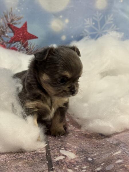 message lrxgml4262 about this ad 2 beautiful long coat Chihuahua puppies available. Im in Philadelphia and am willing to travel to meet you. Blue is Female Blue and tan is Male |